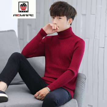 毛衣>>遥渠高领毛衣男秋冬季加厚韩版修身2020新品学生圆领针织衫外套男装 黑色 L