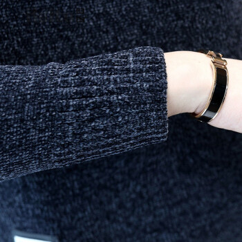 毛衣>>回图 秋冬季毛衣男圆领雪尼尔加绒加厚款毛衫半高领针织衫韩版潮流修身冬装衣服纯色长袖t恤情侣男装毛线衣 深灰蓝色 XL