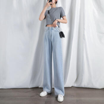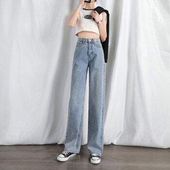 高腰阔腿裤泫雅牛仔裤女2020年新款夏季薄款直筒宽松垂感拖地裤子 复古蓝 XXS 75-85斤