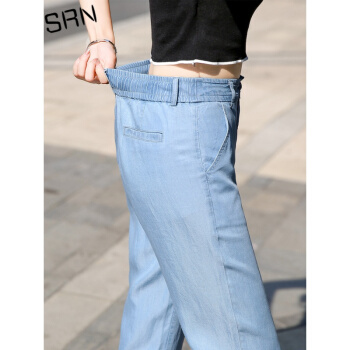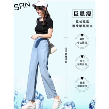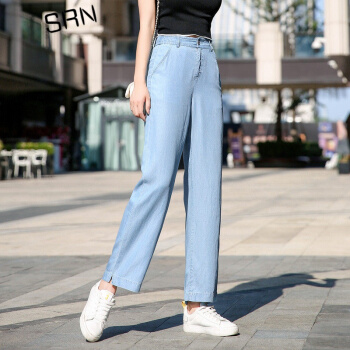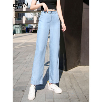 SRN轻奢女装 冰丝阔腿裤女2020新款高腰直筒宽松夏季冰氧吧显瘦显高薄款天丝牛仔裤 浅蓝色 26