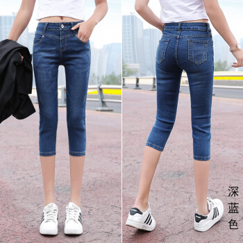 P.E.K.D 2020新款夏季七分牛仔裤女薄款宽松韩版7分裤女弹力修身显瘦中裤 深蓝 28
