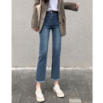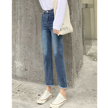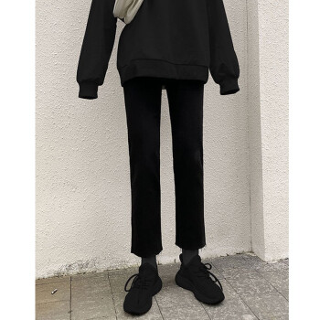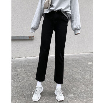 牛仔裤>>【精选好货】Hizze直筒牛仔裤女2020年新款夏季薄款时尚高腰显瘦黑色女裤学生宽松百搭九分库 经典黑-直筒毛边 请拍正确尺码