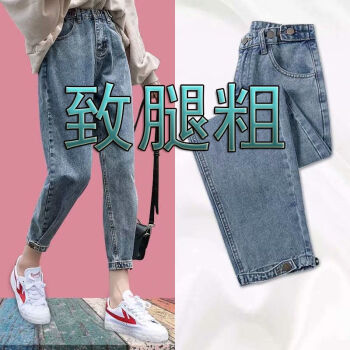 洋梦星童牛仔裤女小脚九分裤2020夏季新款韩版高腰显瘦女裤哈伦裤潮 5995浅蓝色【束脚】 M100斤左右