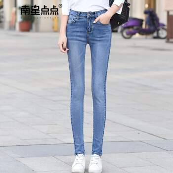 南星点点新款牛仔裤女紧身韩版秋季显瘦长裤浅色学生小脚铅笔裤 浅蓝色 26