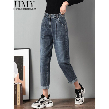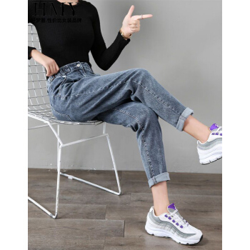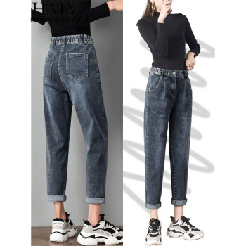 【好质量】好梦雅 高腰牛仔裤女裤宽松2020春秋季薄款新款韩版哈伦裤宽松显瘦萝卜女裤子直筒泫雅老爹裤 228款【蓝灰色】 28 【建议105斤-115斤】