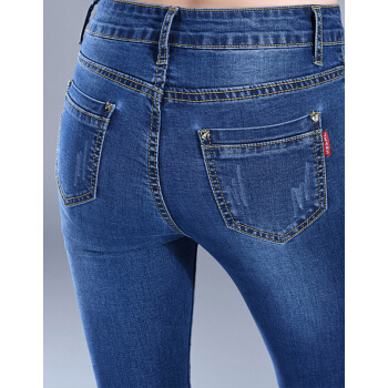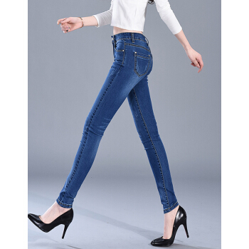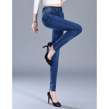 牛仔裤>>【精选女裤】Hizze牛仔裤女2020春夏季新款修身弹力显瘦韩版时尚小脚紧身高腰百搭铅笔裤休闲长裤 深蓝 请拍正确尺码