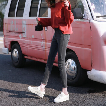 灰色牛仔裤女2020年夏季新款高腰弹力修身显瘦学生紧身百搭休闲秋装女士九分小脚铅笔裤子 灰色九分 27码