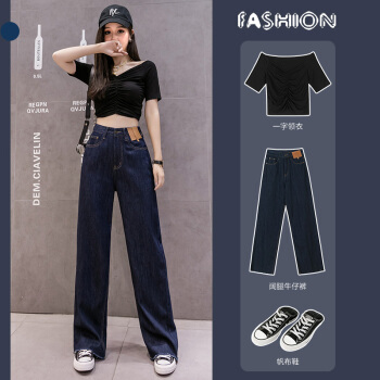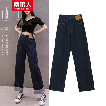 南极人 牛仔裤女2020夏季新款阔腿裤韩版时尚百搭宽松显瘦高腰垂感拖地裤子 N7-FF2D11-525-蓝色 请拍正确尺码 |