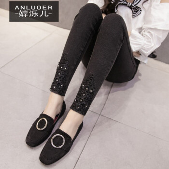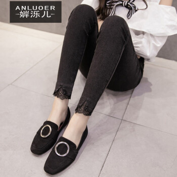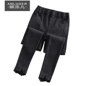 牛仔裤>>婩泺儿牛仔裤女2020初秋装新款牛仔裤女加大码女装牛仔裤胖mm高腰显瘦弹力小脚裤长裤子休闲裤 (9274#蕾丝花边)现货 XL(100-120斤)
