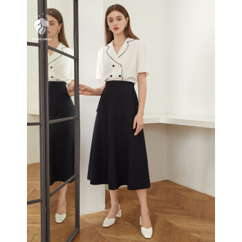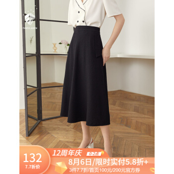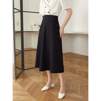 范思蓝恩 2020夏季新款肌理感高腰半身裙女百搭短裙雪纺a字裙子女 黑色 L