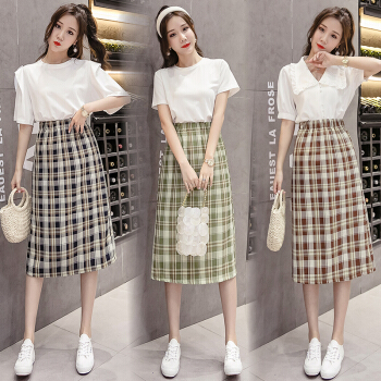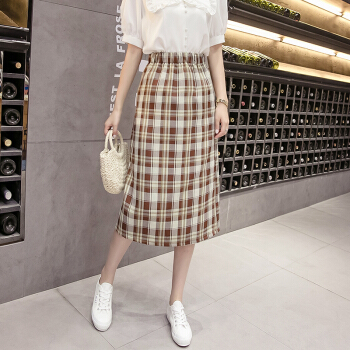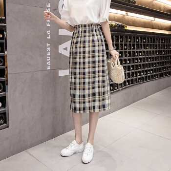 阅樱半身裙女中长款 2020新款女装韩版格子高腰下半身裙子学生裙包臀裙一步裙显瘦百搭夏 绿色 均码