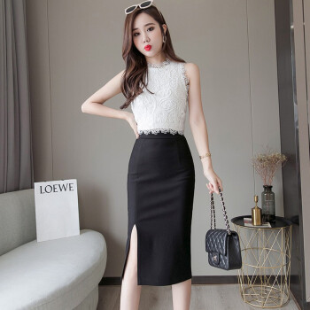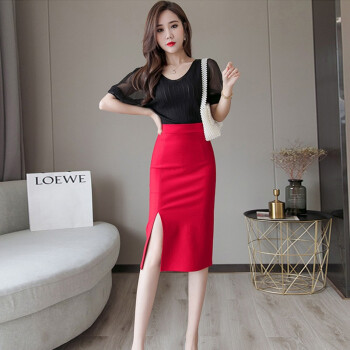 半身裙>>五个橘子半身裙女夏 2020新款女装弹力A字中长款包臀裙开叉黑色紧身显高瘦职业通勤OL上班大码裙子夏 黑色 L