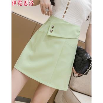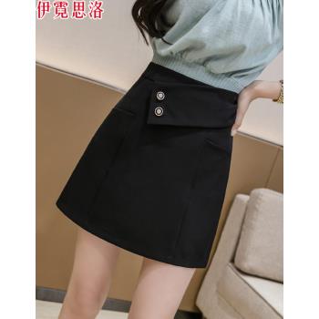 伊霓思洛半身裙女2020夏季高腰新款短裙子韩版A字裙时尚女装显瘦职业裤裙 黑色 M