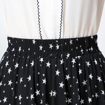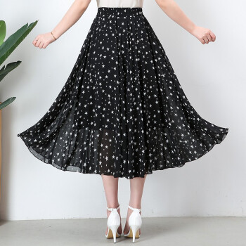 伊索琳星星碎花雪纺2020夏半身裙女中长款夏季高腰不规则荷叶边蛋糕裙中长裙 黑色 均码 80-140斤 |