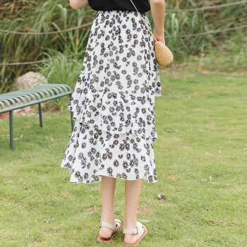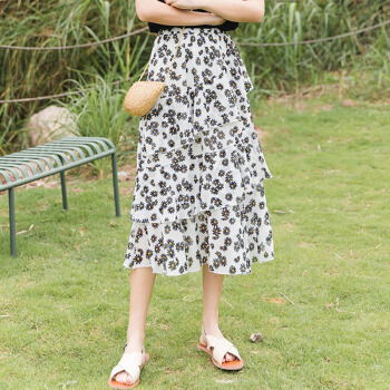 俞兆林 女装网红火爆碎花雏菊雪纺韩版高腰多层蛋糕裙半身裙 YWQZ204505 白裙 均码