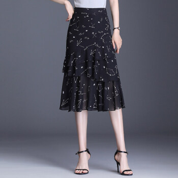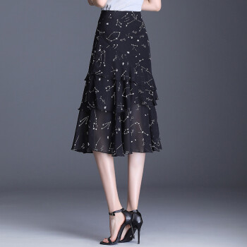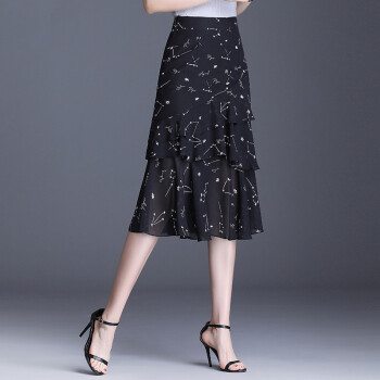 半身裙>>欧偲麦 a字裙半身裙夏季女士雪纺鱼尾裙中长款百褶裙子2020新款高腰蛋糕 9722 花色 XL/29