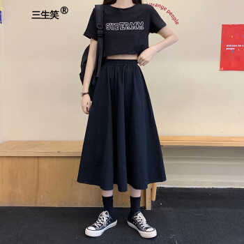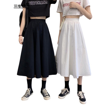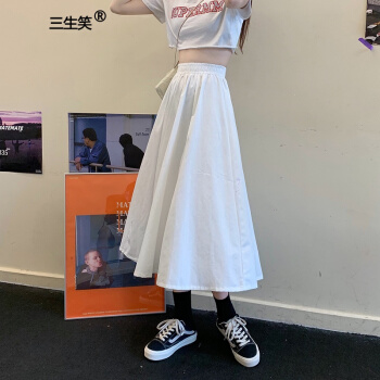 三生笑 白色半身裙女长裙夏季2020新款韩版高腰a字裙显瘦学生中长款裙子 白色 均码