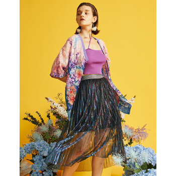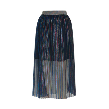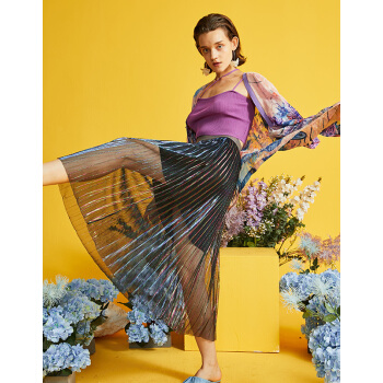 两三事 轻盈曼舞 2020早秋新款时尚彩色亮丝百褶a字半身裙 彩色 L