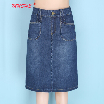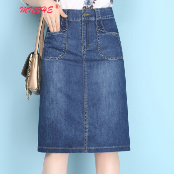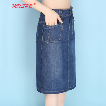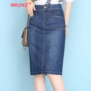 MUSHE原创轻奢 牛仔半身裙女2020夏季新款时尚百搭高腰显瘦简约舒适开叉中长款一步包臀裙 蓝色 L