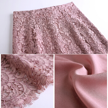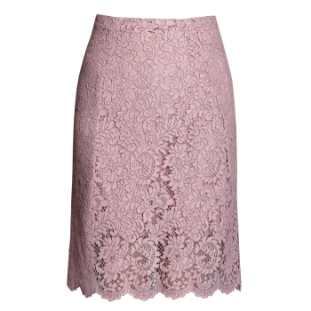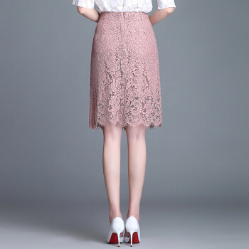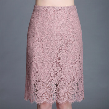 半身裙>>Aosijie轻奢品牌女装 高腰蕾丝包臀半身裙子2020春夏新款睫毛下摆蕾丝勾花中长款大码裙子 藕粉色 M