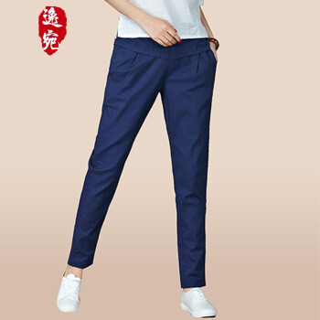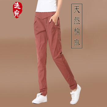 休闲裤>>逸宛yw休闲裤女2020夏季新款棉麻裤紫显瘦百搭小脚长裤薄款大码女装宽松紧高腰休闲亚麻哈伦裤 浅棕色 M【建议100-110斤】