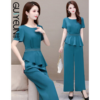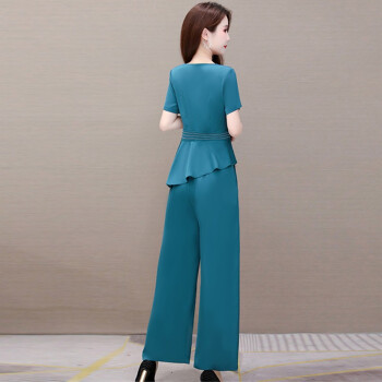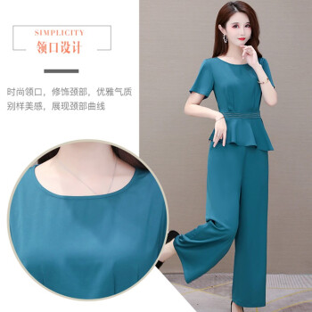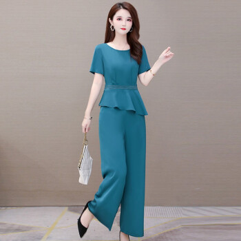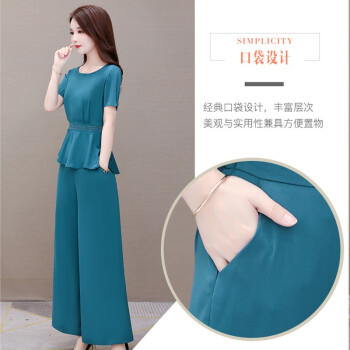 闺园休闲裤女套装2020秋冬季新款小香风洋气休闲时尚套装女妈妈装阔腿裤女两件套 虾青色 请拍正确尺码