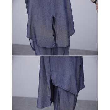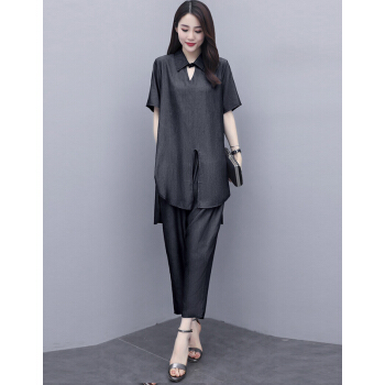 婪澈休闲裤女时尚妈妈装两件套2020年女装夏季新款洋气大码宽松中年人成熟套装女 黑灰色 请拍正确尺码