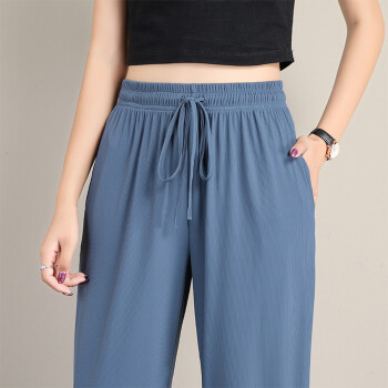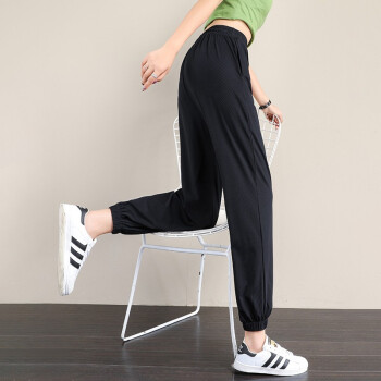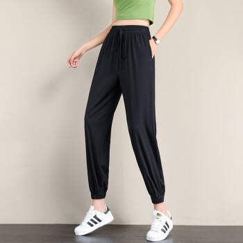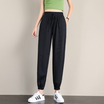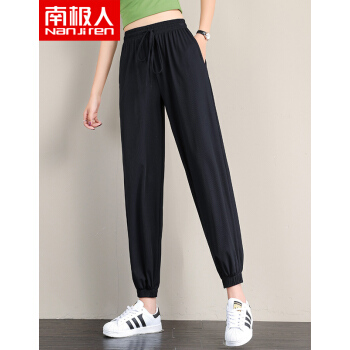 休闲裤>>南极人 冰丝运动裤女2020夏季新款宽松束脚薄款卫裤垂感显瘦百搭休闲裤女学生阔腿灯笼裤 黑色 请拍正确尺码