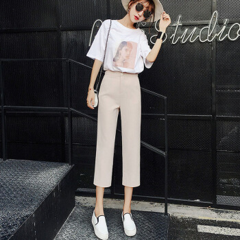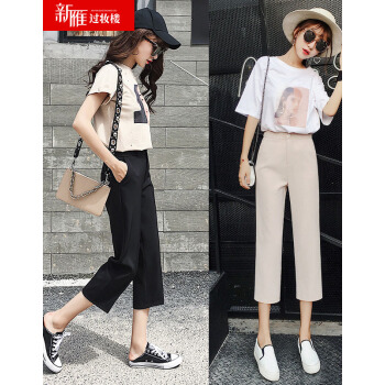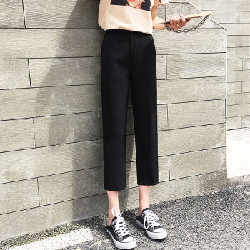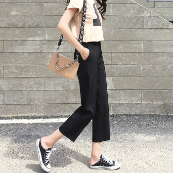 阔腿裤女九分裤2020夏新款休闲高腰垂感西装裤薄款宽松七分直筒裤秋天 黑色9分 M