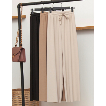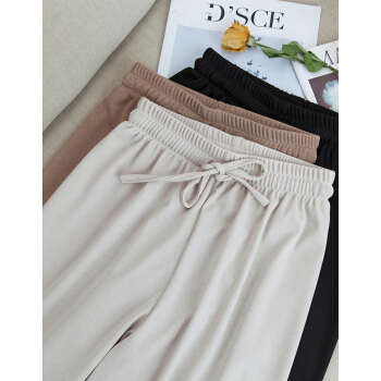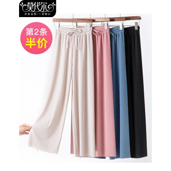 休闲裤>>莫代尔冰丝阔腿裤女春秋九分休闲裤夏高腰垂感小个子显瘦宽松百搭直筒西装运动哈伦 黑色九分(建议85-135斤)