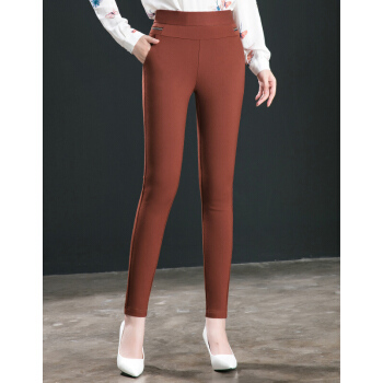【精选女裤】晞薇休闲裤女裤2020秋季新款韩版大码打底裤外穿高腰显瘦中年妈妈裤焦糖色弹力小脚长裤 焦糖色 M