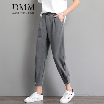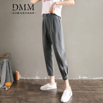 朵沐缦 束脚休闲裤女高腰显瘦2020夏季薄款哈伦裤时尚韩版百搭西装裤直筒宽松九分萝卜裤潮 1680-1薄款 灰色 L