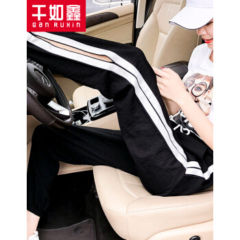 干如鑫休闲裤女运动裤女夏薄款2020新款九分束脚休闲怪味哈伦裤百搭宽松九分灯笼雪纺裤纱显瘦裤子女 黑色 XL(105-120斤)