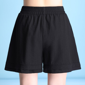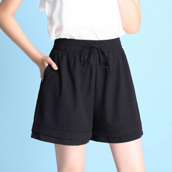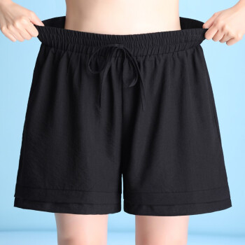 梓龄 短裤女运动裤女2020新款夏季加肥加大码冰丝棉麻短裤女百搭休闲阔腿外穿运动裤薄款三分裤 黑色 请拍对应尺码