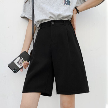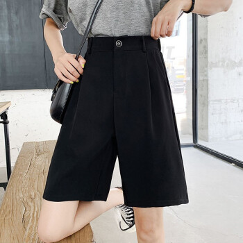 南极人 西装短裤女夏宽松2020新款休闲显瘦黑色直筒雪纺高腰阔腿裤五分减龄中裤 YYR892 黑色-真门襟 请拍正确尺码