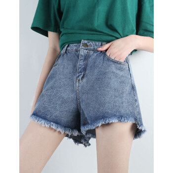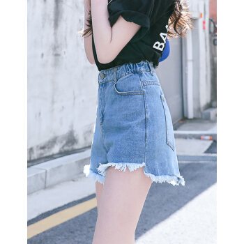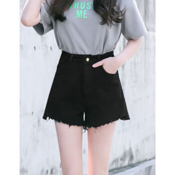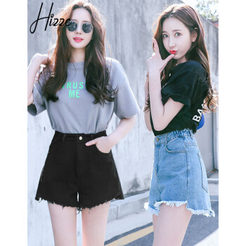 短裤>>【精选女裤】Hizze 短裤女夏2020新款韩版宽松学生百搭高腰chic白色破洞牛仔裤显瘦减龄热裤潮 【斜边】黑色 请拍正确尺码