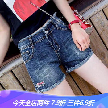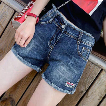 沫澜仟衣牛仔短裤女2020夏季新款韩版高腰显瘦休闲百搭裤子女宽松时尚毛边a字热裤 深蓝 26码