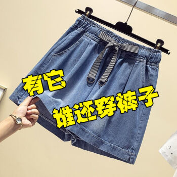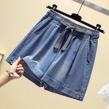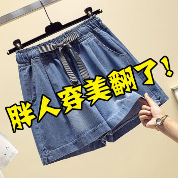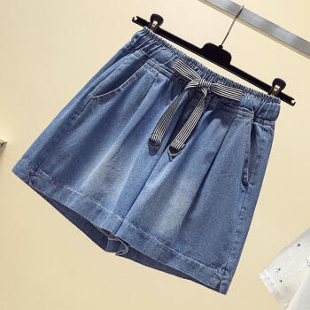 YUDA胖mm牛仔短裤女松紧高腰显瘦百搭学生a字版阔腿裤女适合遮大粗腿牛仔短裙裤女 蓝色 L 【建议100-115斤】