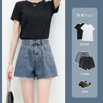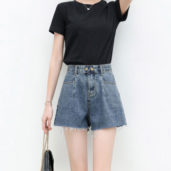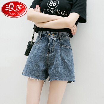 浪莎牛仔裤短裤女高腰热裤显瘦显高外穿韩版a字夏季薄款宽松热裤潮 复古蓝经典款 26