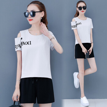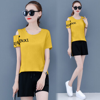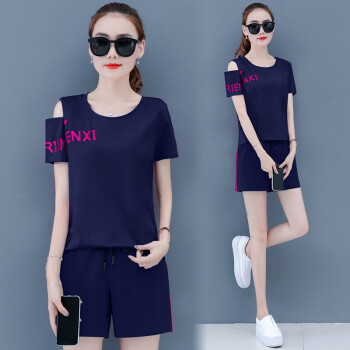 蕴之婧 2020新款运动休闲套装女大码女装夏韩版宽松ins潮显瘦小个子棉两件套短袖T恤短裤女 宝蓝 L(建议90-105斤左右) |