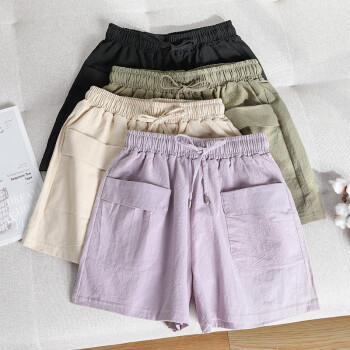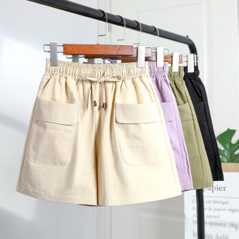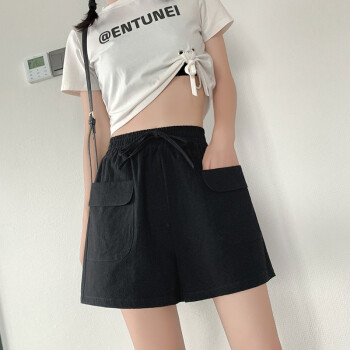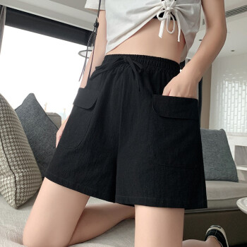 短裤>>【2条特价】曲诺 2020新款短裤女夏宽松外穿显瘦高腰阔腿黑色运动棉麻休闲大码胖mm 黑色 XL