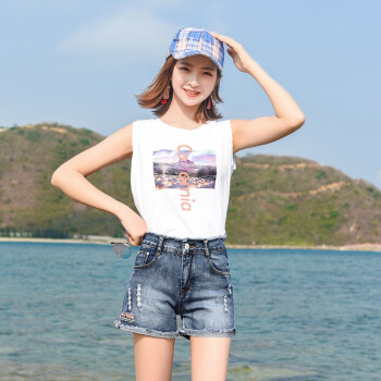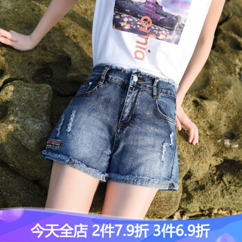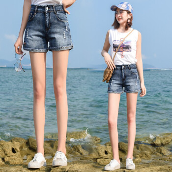 破洞牛仔短裤女2020夏季新款韩版高腰弹力显瘦宽松外穿a字休闲百搭毛边热裤 中蓝 28码