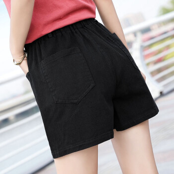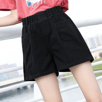 短裤>>【2件特价】右昀 短裤女夏2020新款韩版高腰显瘦阔腿休闲宽松三分学生薄款热裤女大码牛仔短裤 黑色 L【适合105-115斤】