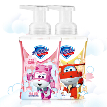 洗手液>>舒肤佳泡沫儿童洗手液超级飞侠樱花225ml+白茶225ml pH温和 健康抑菌 (抑菌99.9% 温和洁净)