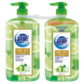 洗洁精>>超能 柠檬护手洗洁精1.5kg*2 加浓 快速去油污 植物洁净配方 呵护双手 安全无残留 可直接清洗水果宝宝餐具