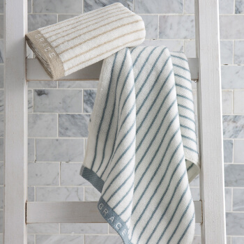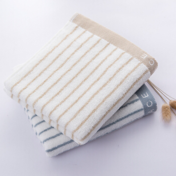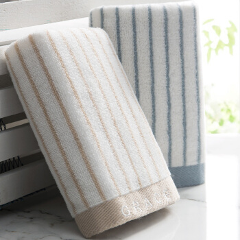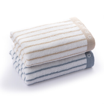 洁丽雅(Grace)毛巾家纺 经典条纹系列纯棉强吸水毛巾 二条装 兰/棕 72*34cm