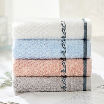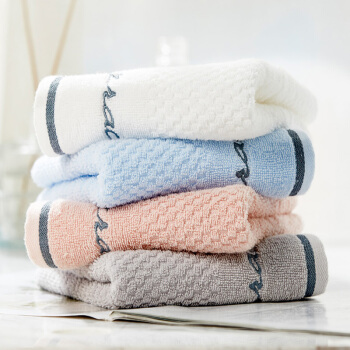洁丽雅(Grace)毛巾家纺 纯棉绣花洗脸巾简约素雅面巾擦脸洁面巾四条装 红*兰*白*灰各一条
