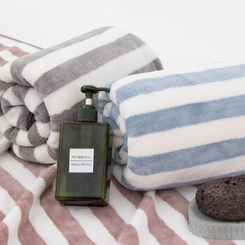 三利 柔软吸水速干大浴巾 条纹洗澡巾裹身巾 70*140cm 银灰色