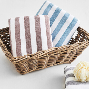 三利 柔软吸水速干大浴巾 条纹洗澡巾裹身巾 70*140cm 浅蓝色