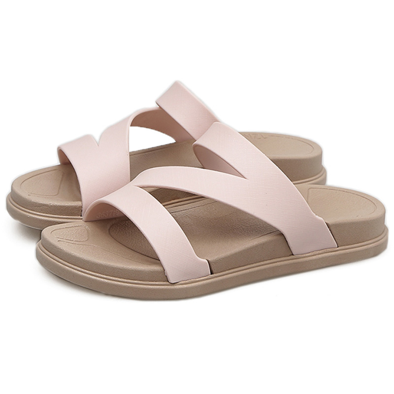 【防滑垫】日系简约舒适按摩点浴室防滑情侣凉拖鞋【EVA/浅粉】